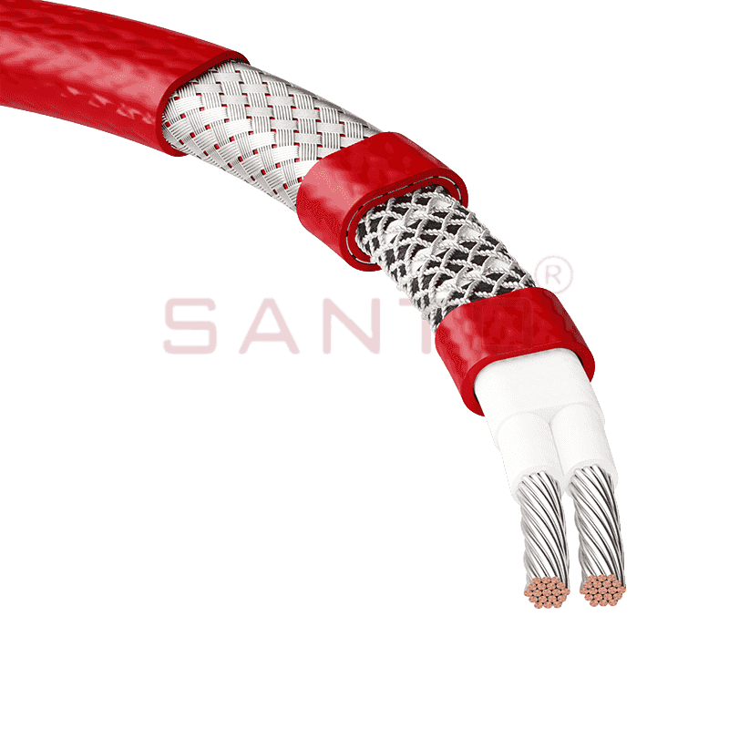 La gamme SANTO ACC de câbles chauffants à limitation de puissance est principalement utilisée pour le maintien en température des processus et offre l'avantage d'une puissance de sortie élevée à des températures élevées, ce qui peut réduire le nombre de câbles chauffants nécessaires. Ils peuvent également être utilisés pour la mise hors gel des canalisations et des récipients nécessitant un nettoyage à la vapeur. Ces câbles chauffants sont tous dotés d'une gaine extérieure en polymère fluoré offrant une haute résistance chimique. Les produits ACC sont disponibles en différentes tensions, 110 VCA, 230 VCA et 480 VCA. La version 480 V offre l'avantage supplémentaire de grandes longueurs de circuit, réduisant potentiellement le nombre de points d'alimentation requis. Les produits sont approuvés pour une utilisation dans les zones dangereuses Zone 1, Zone 2 (Gaz), Zone 21 et Zone 22 (Poussière). Contrairement aux câbles chauffants autorégulants, la classification T de ces produits doit être calculée et dépendra des conditions de conception, cela peut également entraîner la nécessité d'utiliser un limiteur de température de sécurité. Remarque : les câbles chauffants à puissance constante ABB ne peuvent pas se chevaucher, l'ACC pour limiter la puissance, les câbles chauffants peuvent être utilisés une fois superposés, l'élément chauffant en fibre de carbone AFF, aucun rayonnement électromagnétique, la résistance à la traction élevée ne sera pas endommagée.
